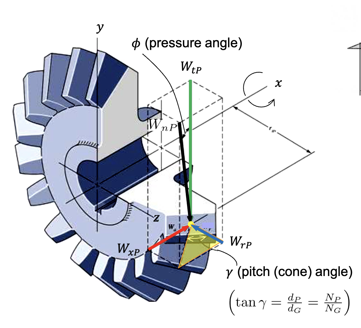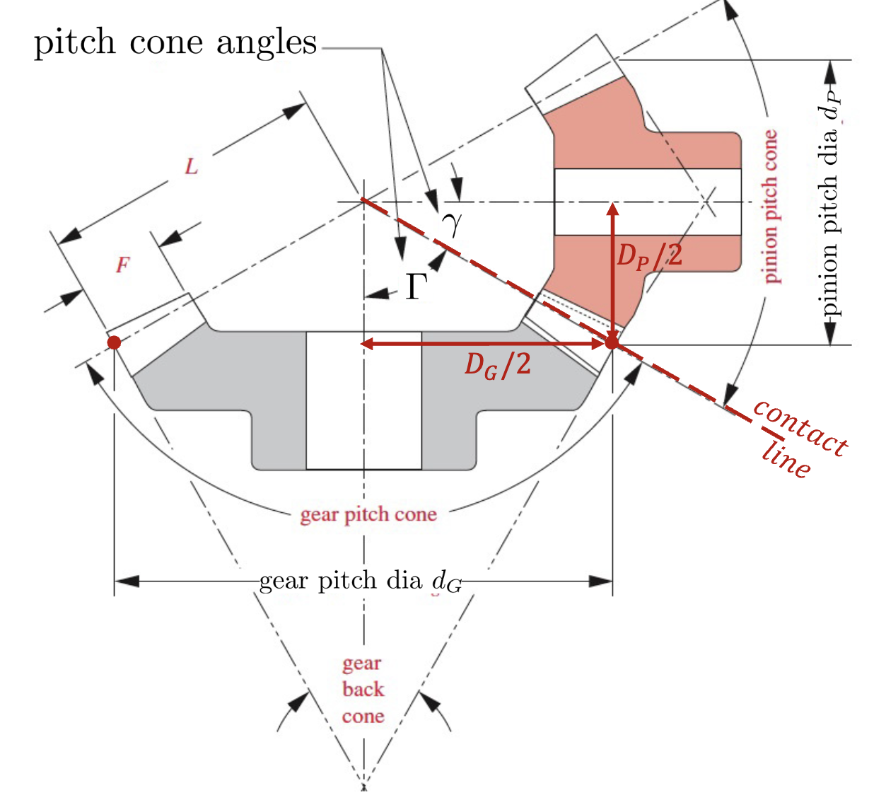 - is the pressure angle of the pinion and is the angle between the line of action and the torque transfer line
