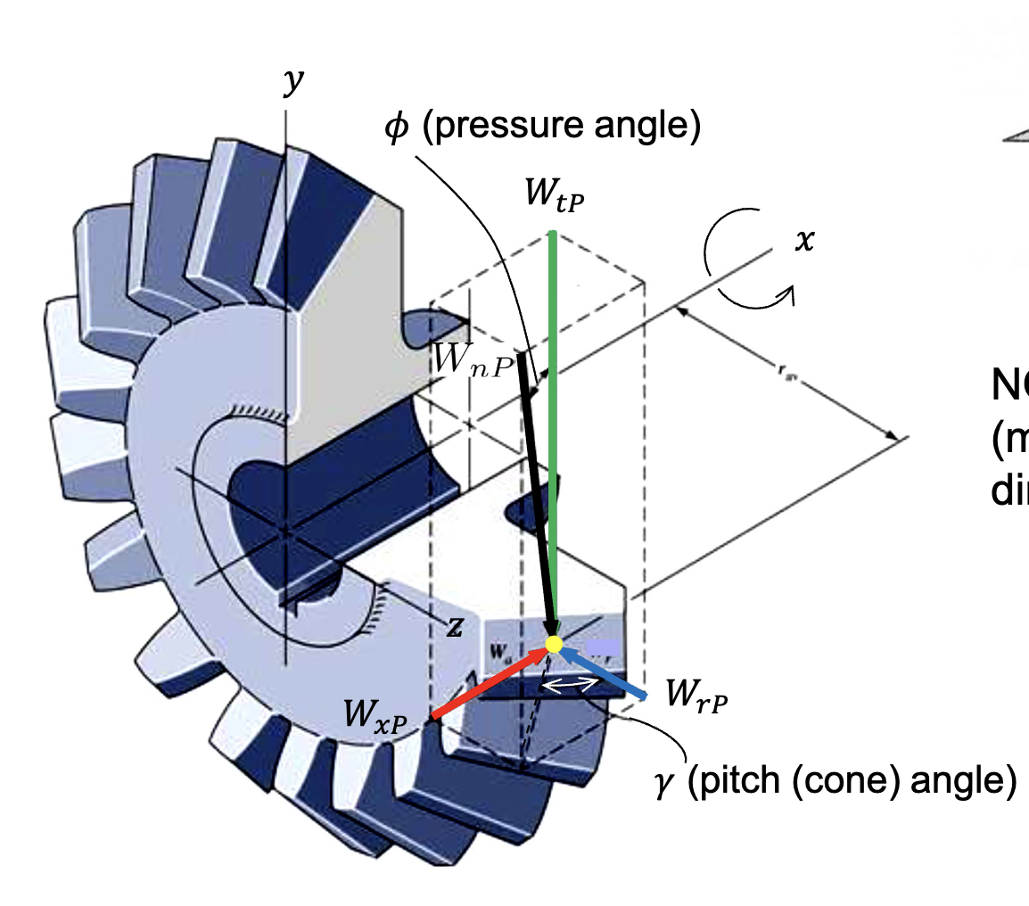 - Given for either the pinion or the gear, we can use and first to get radial and axial stuff