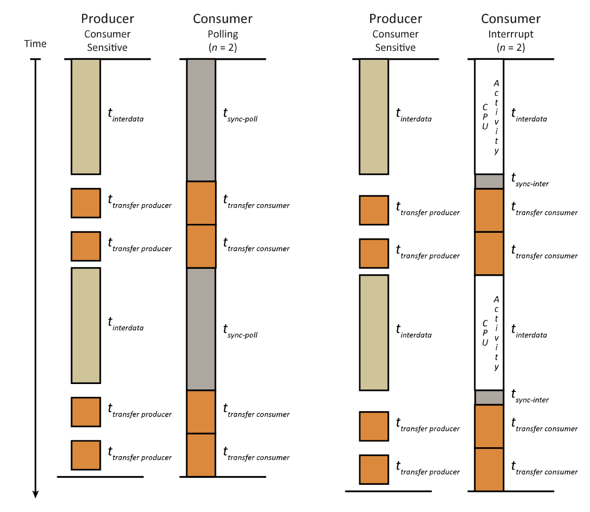 - Twice as many bus cycles as the implicit version of the transfer but no hardware changes to the device interface