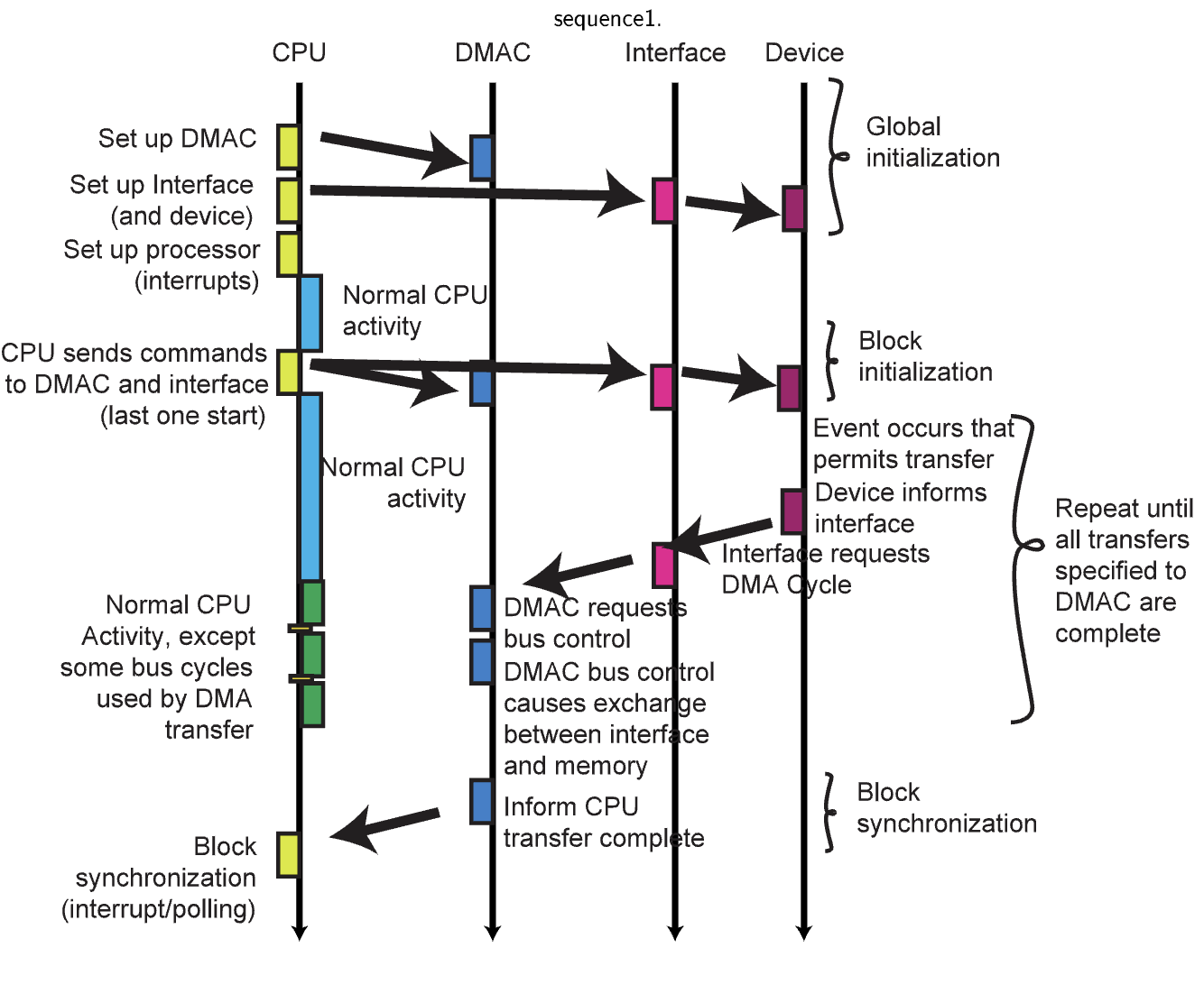 This isn’t a great method of doing things, so the CPU sets up the DMA to transfer a large file while it does other stuff