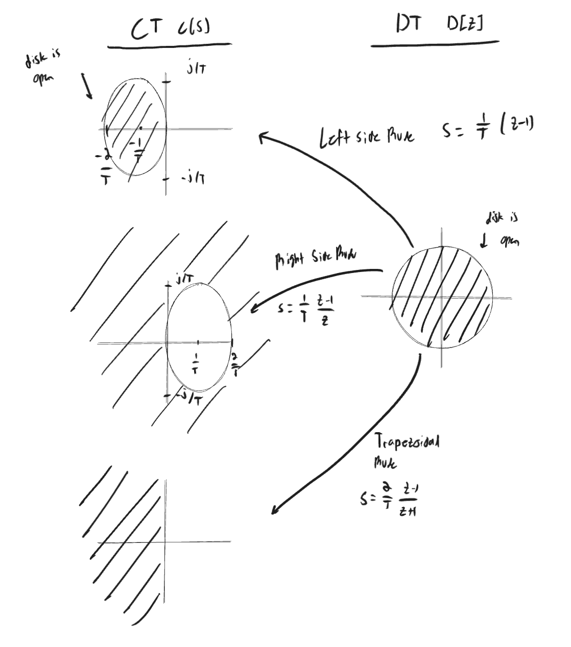 We recover the entire left-half plane but, we could have poles that are unstable in continuous time that are in the right half plane, that map to stable poles in discrete time