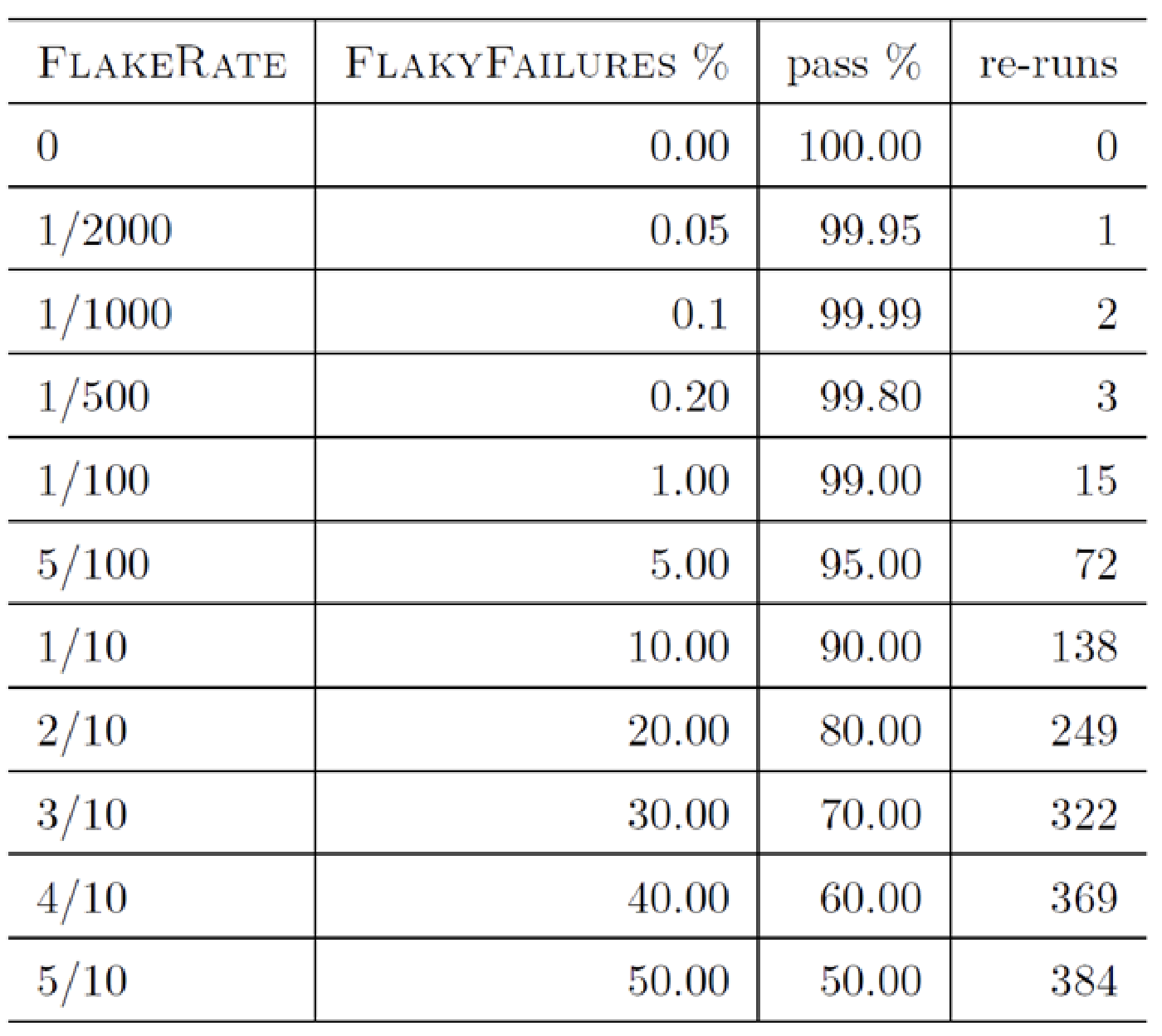 - Flake Rate is calculated from a stable build and estimated by test failure rate