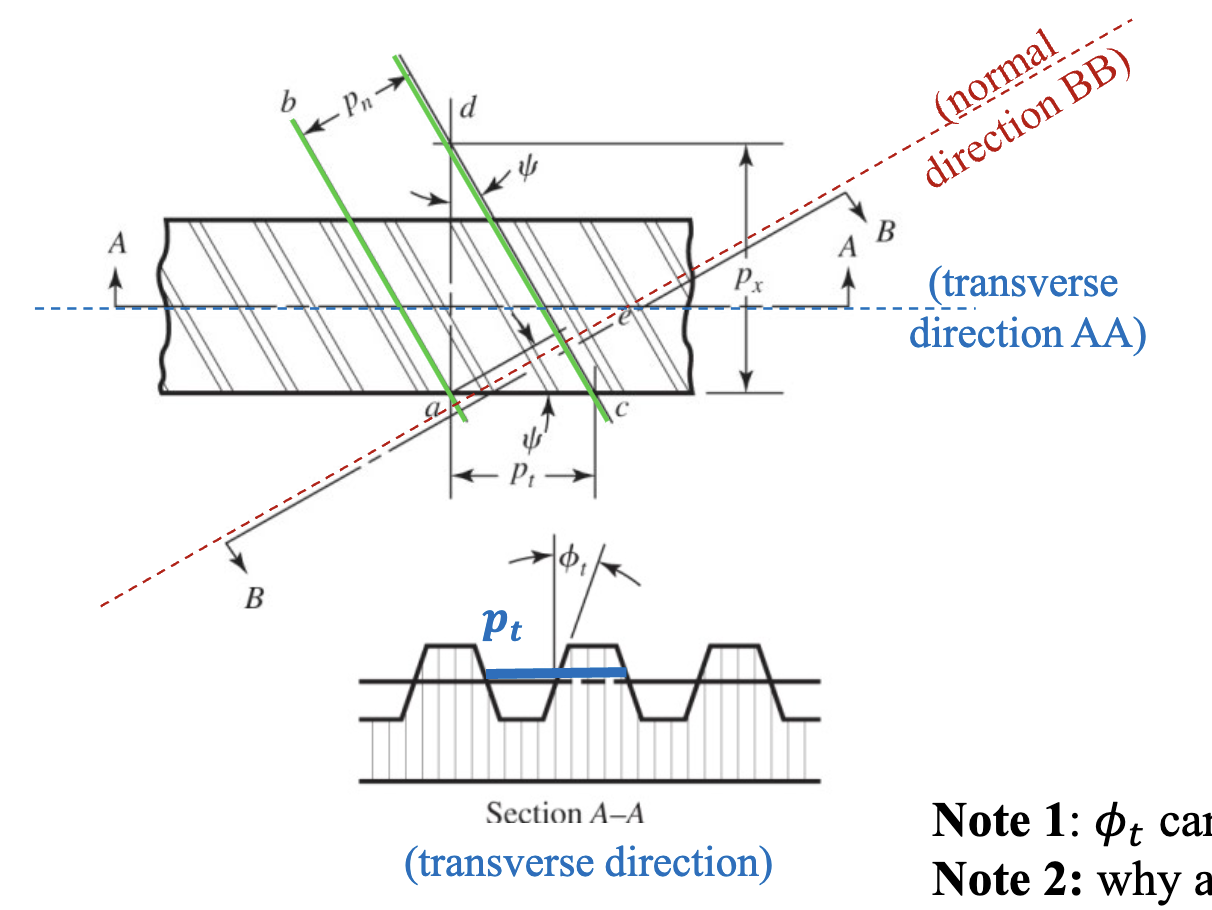 You can have right vs left-handed gears which are mated with opposite handedness. For right handed hears, the teeth twist clockwise.