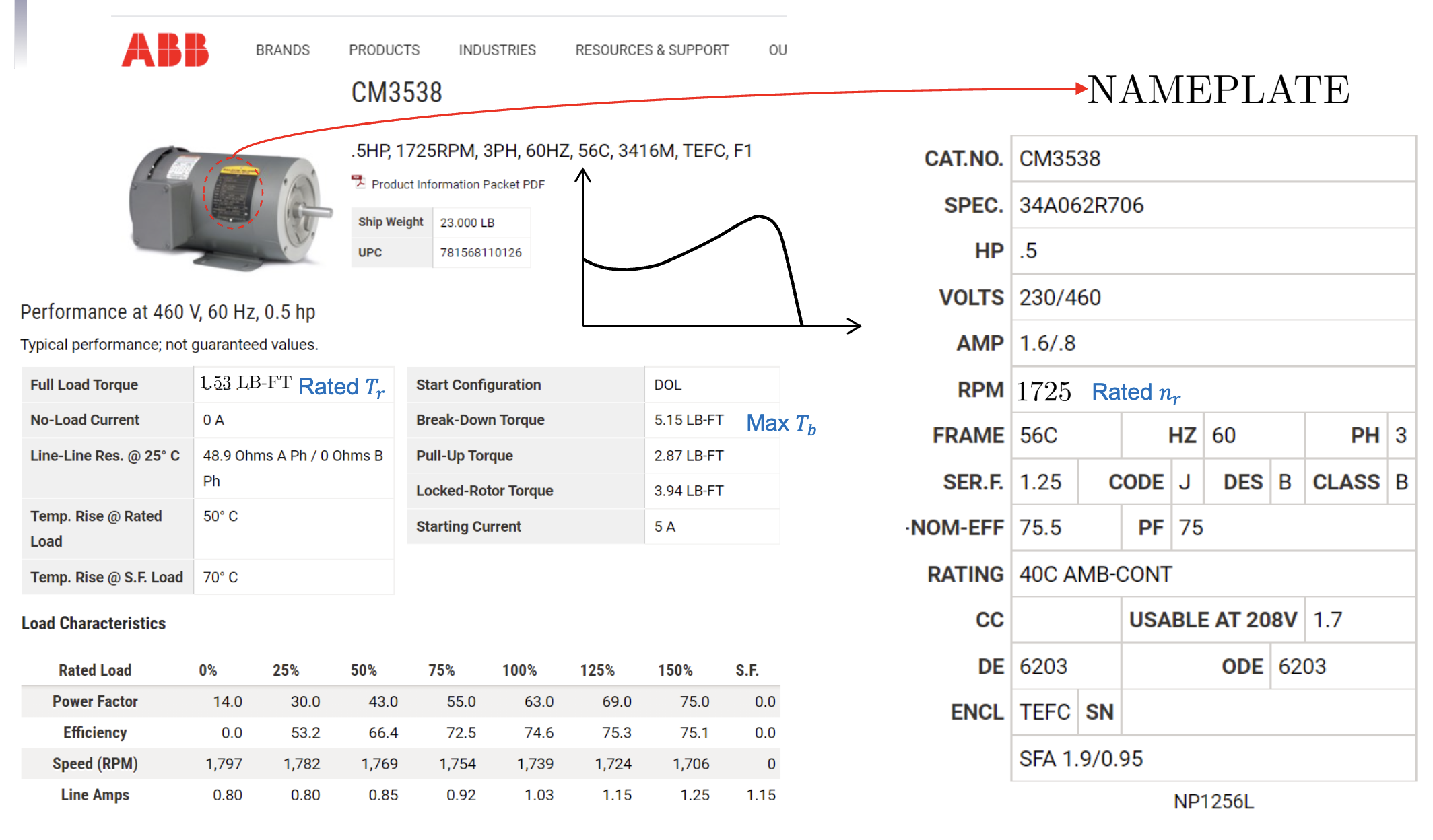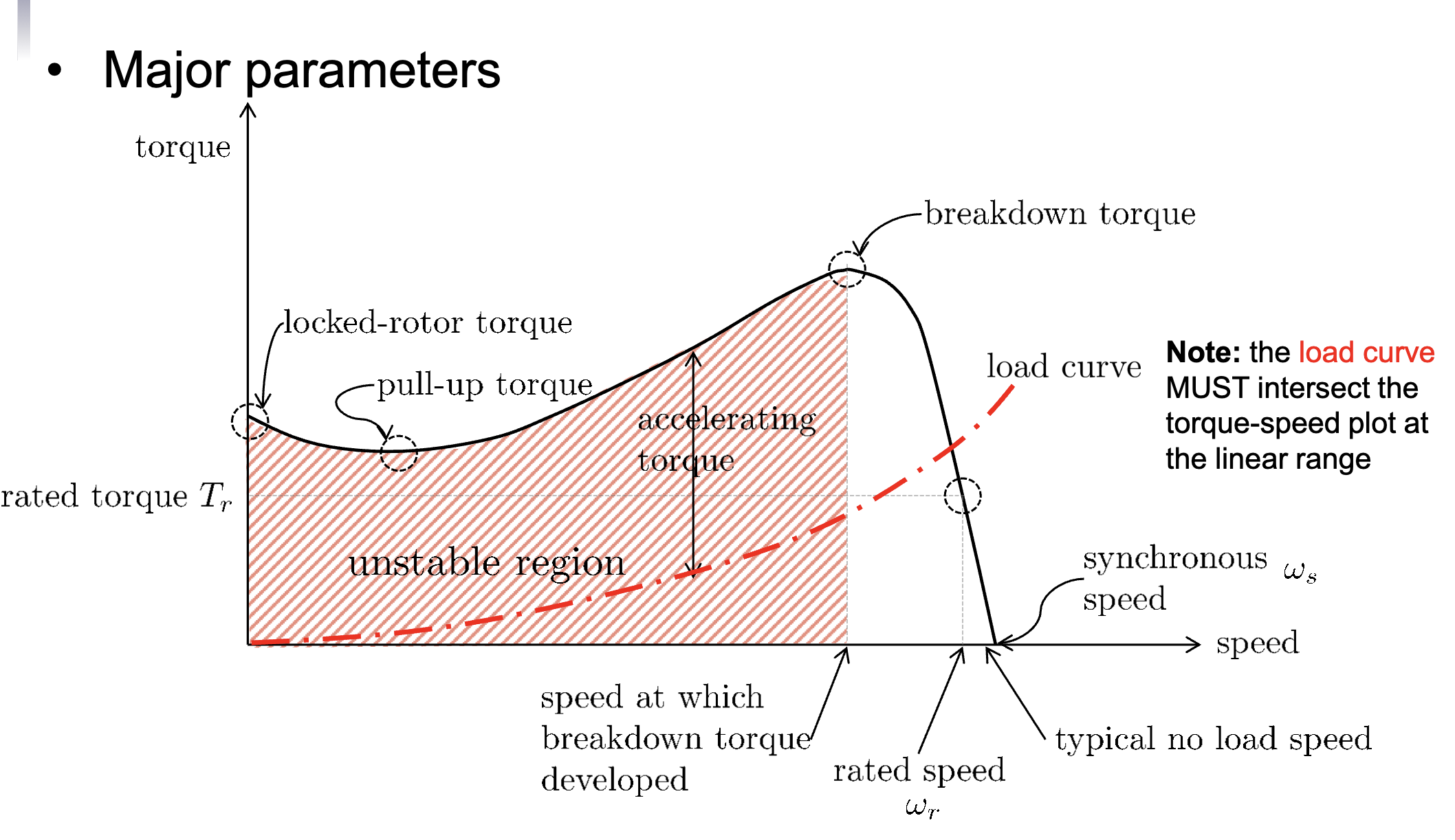 - Break-down torque: The maximum torque available during the acceleration period before the motor reaches its full-load torque (nominal torque)
