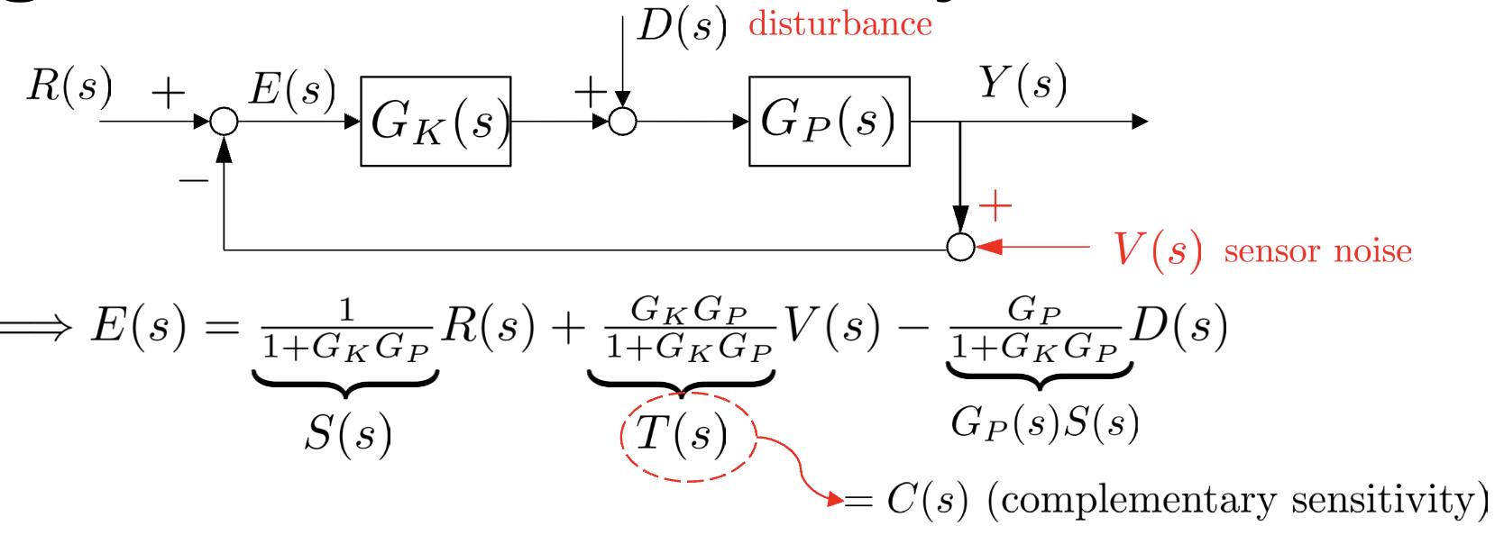 - For noise rejection, parameter uncertainty… T(s) to be small → is small