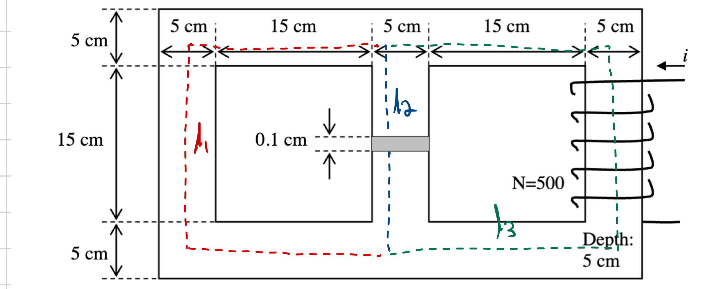 - Find l’s of circuit (you can combine series lengths into one l and reluctance to save on computation)
