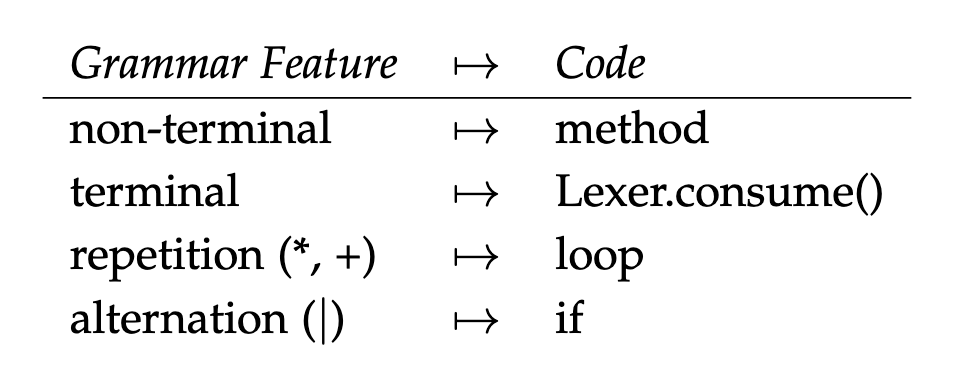 - We always build a recognizer before a parser, and we systematically derive code from a spec
