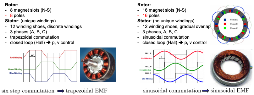 - Brushless DC Motors all implement a trapezoidal EMD with non-overlapping coil distribution