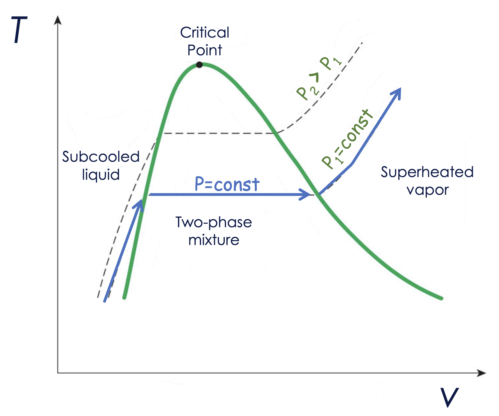 See here for the LE8 example. Beyond the critical point on a T-v diagram, there is the super critical range where gasses start to exist in distinct phases.