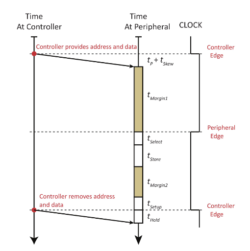 - Wait for the select, store (after device is selected, get everything ready to be stored but don’t actually store) and margin time (margin time aligns actual storage right at the end of the transaction on the next rising edge)