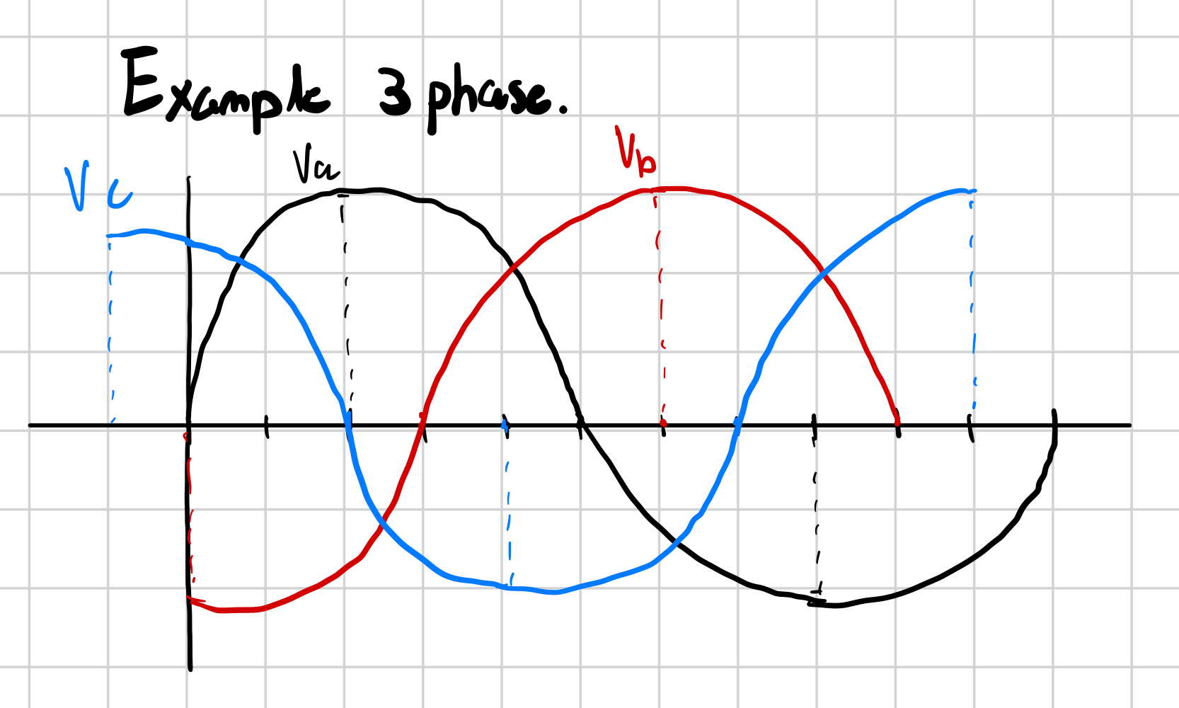 If viewed on a cartesian plane, all three voltages are spaced out evenly by 120Β° (360Β° / 3 = 120Β°).