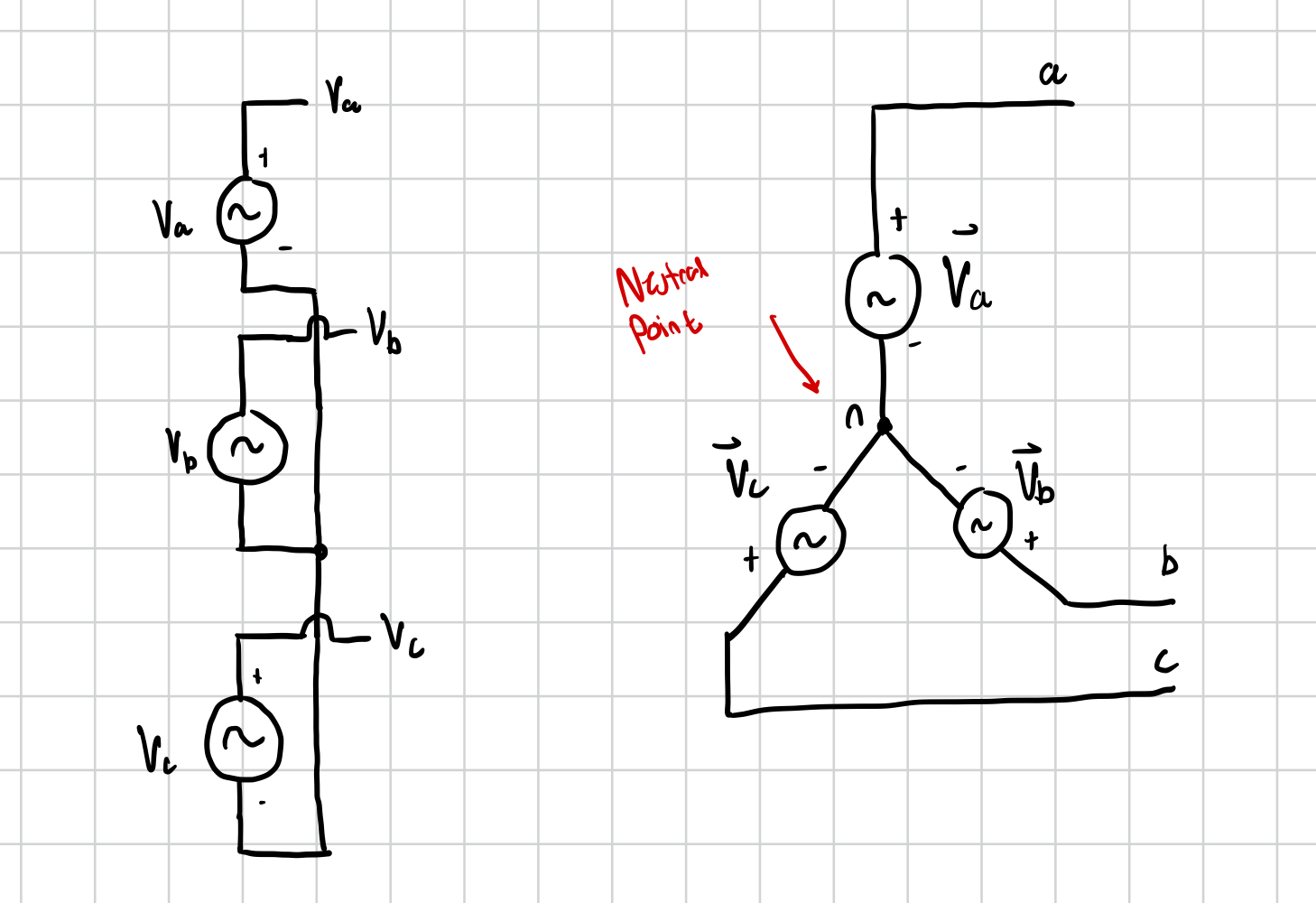 The algebraic sum of , , and is = 0 making it a balanced 3 phase source.