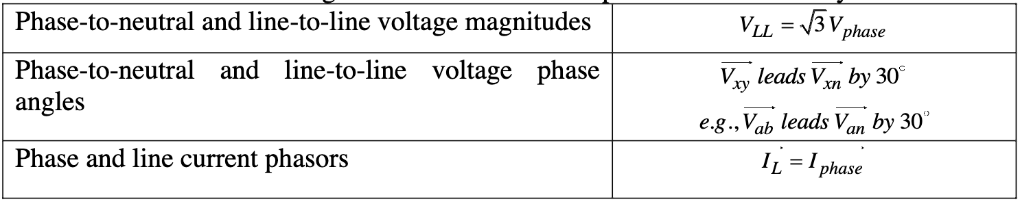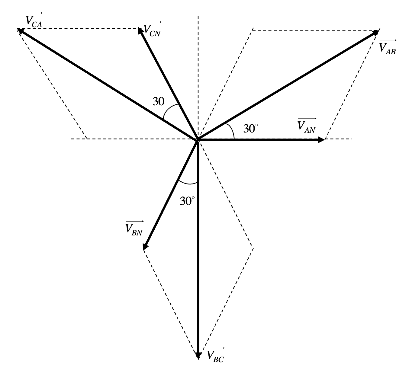 Through geometry, the phasors of the line to live voltages can be expressed as: