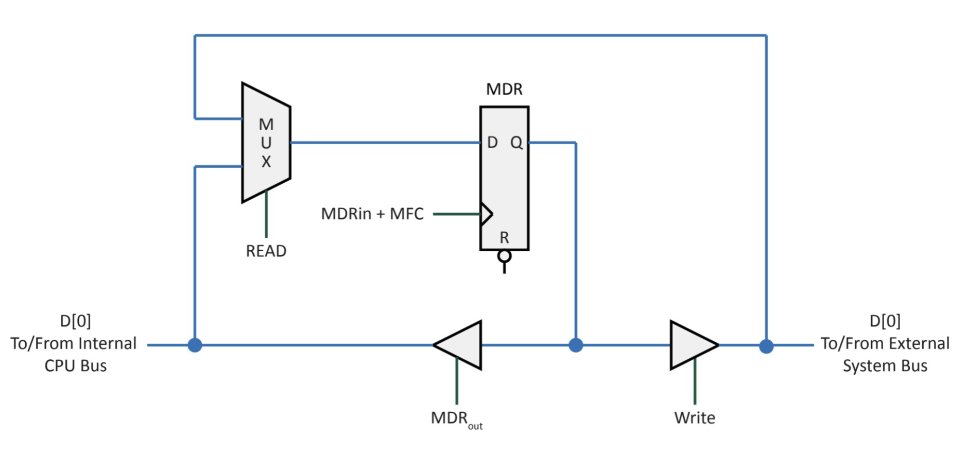 Therefore, data must pass through a register before getting to the device