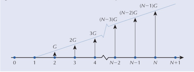This is a series of receipts (+) or disbursements (-) that start at zero at the end of period 1 and increases (decreases) by a constant amount (G) from period to period. I.e, if you decrease by 200, then 220, 240, 260, etc..