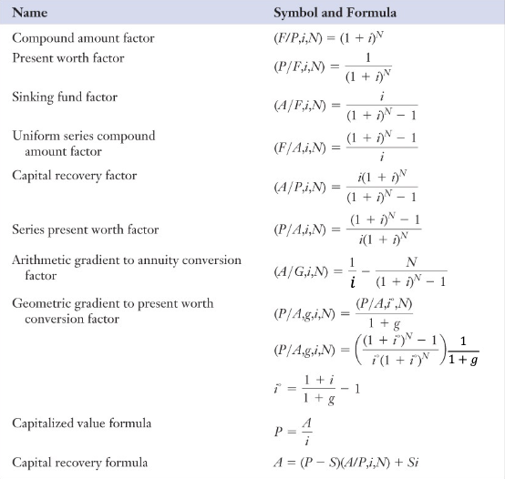 - Sinking fund factor (a distribution which is equivalent to some future amount)